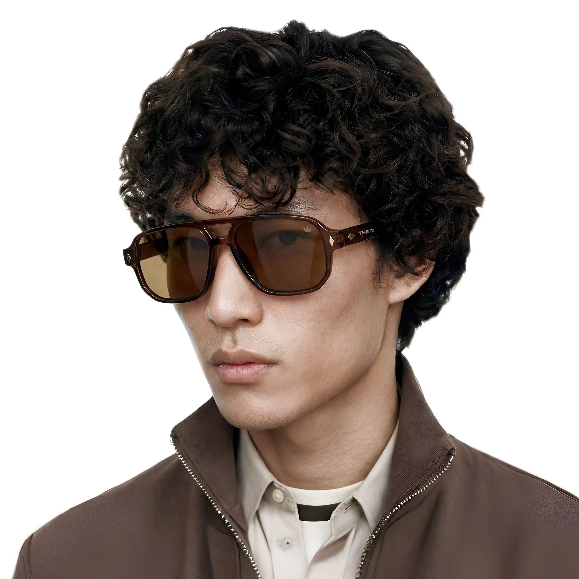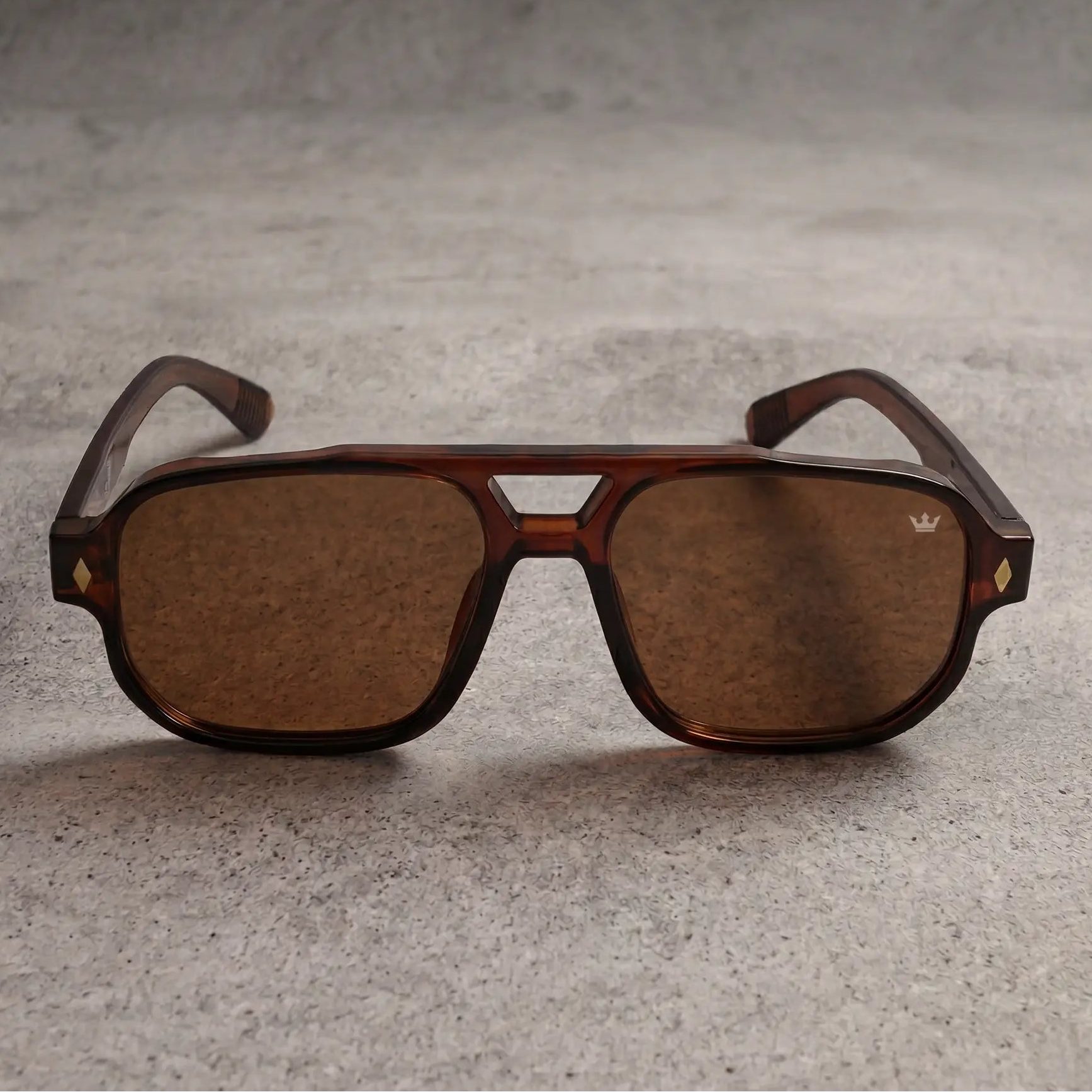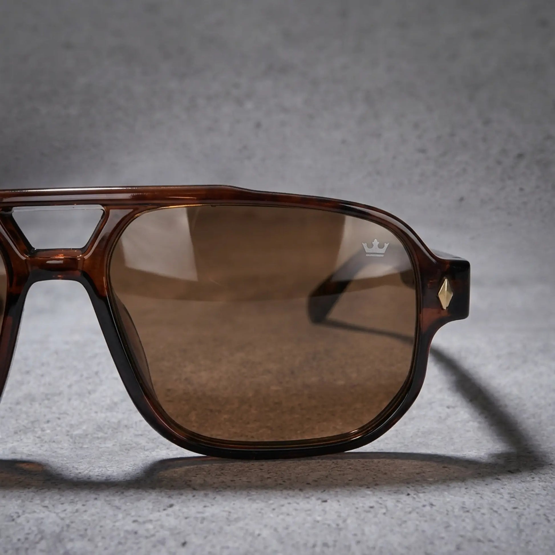 The silhouette draws from a bold aviator structure with a modern squared edge, symbolizing balance between strength and clarity.Paired with warm tobacco lenses, the design enhances contrast while maintaining a calm, controlled visual experience.