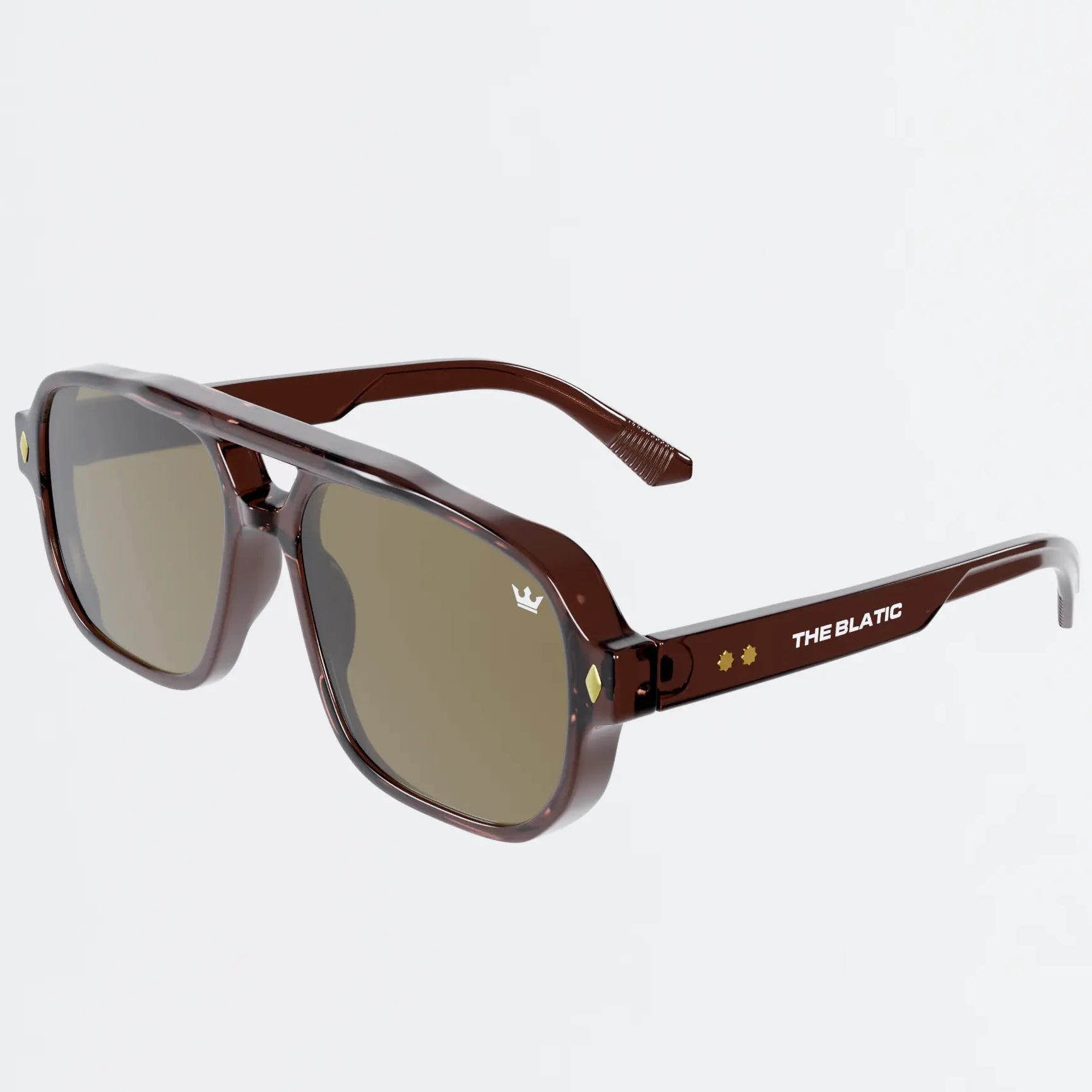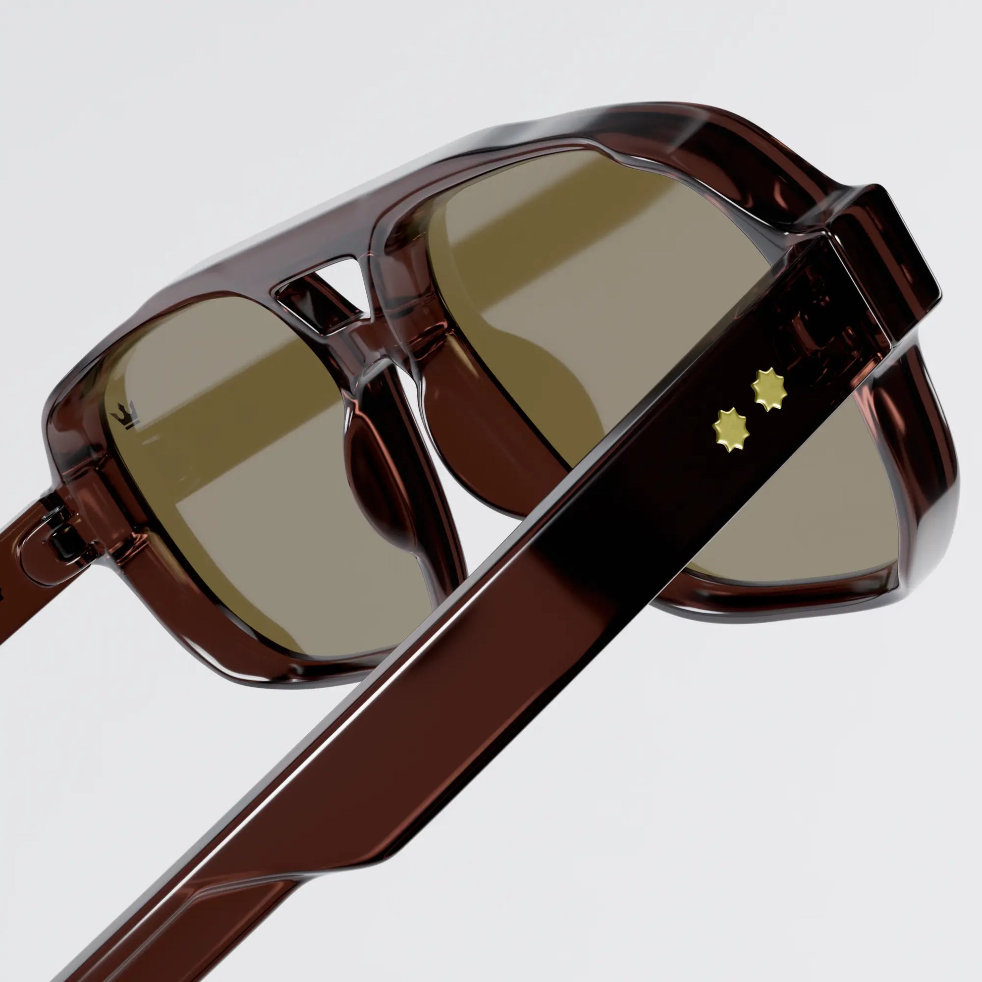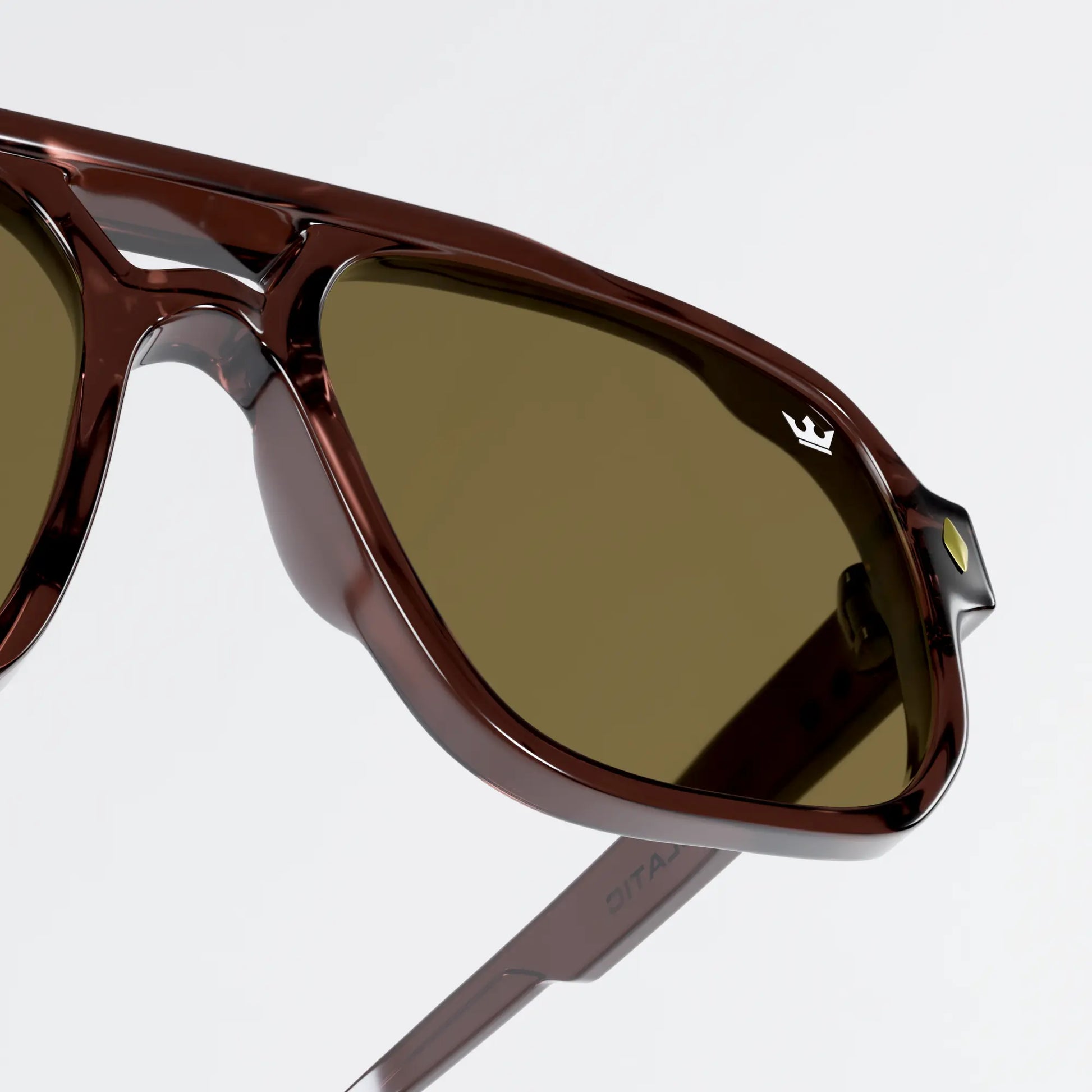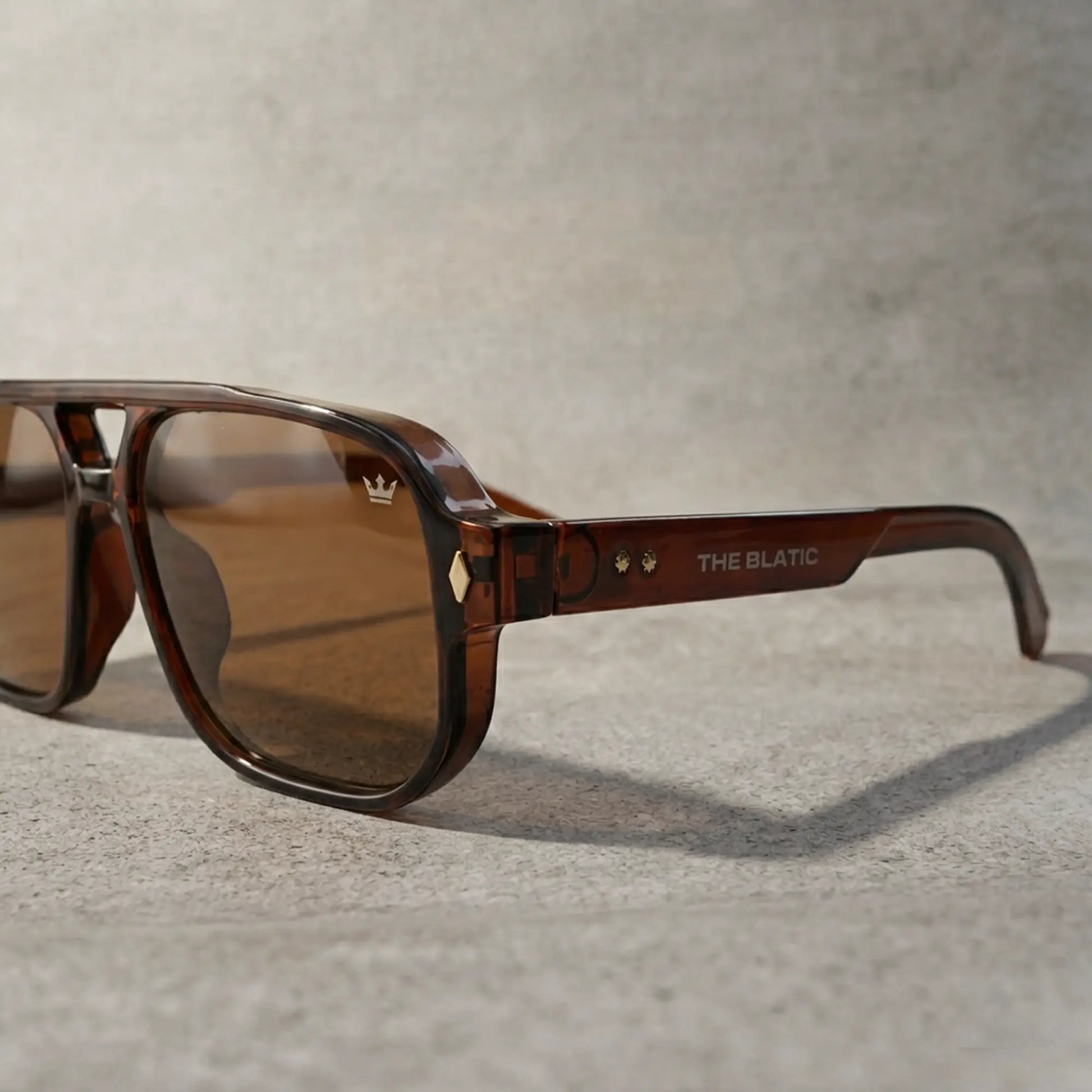 The silhouette draws from a bold aviator structure with a modern squared edge, symbolizing balance between strength and clarity.Paired with warm tobacco lenses, the design enhances contrast while maintaining a calm, controlled visual experience.